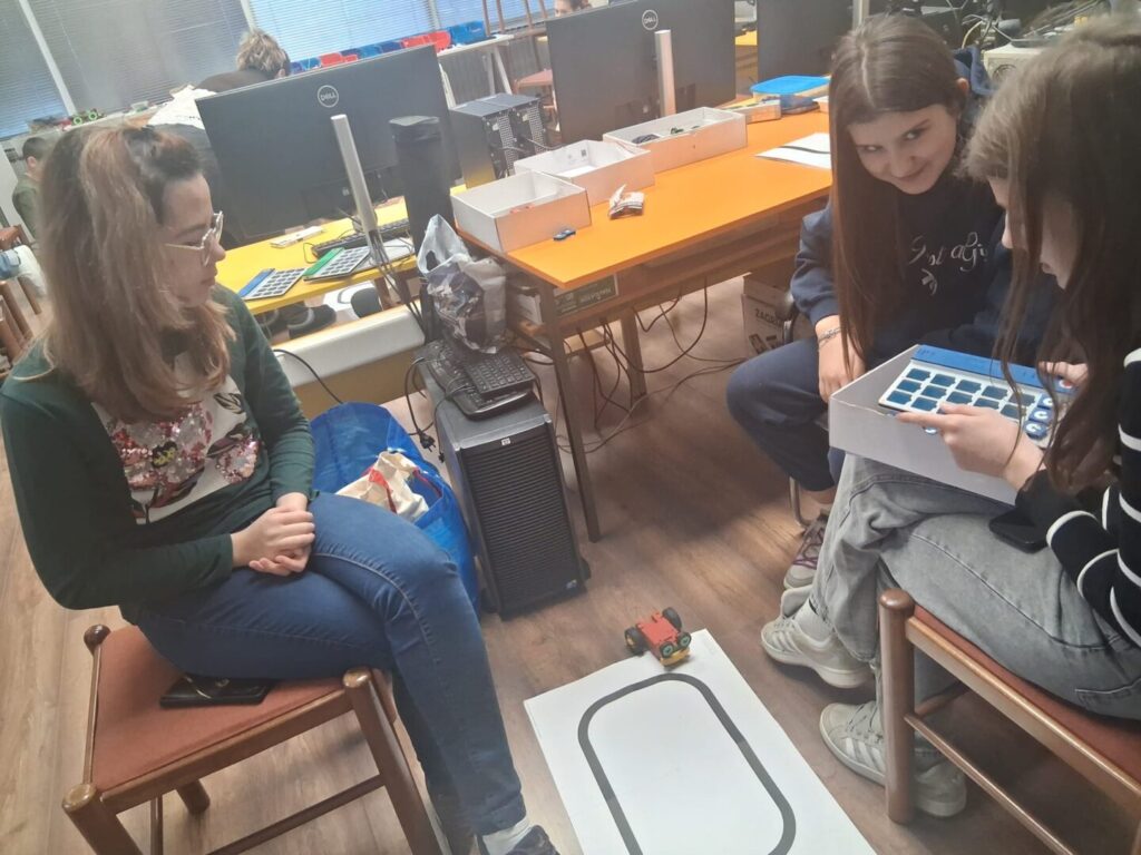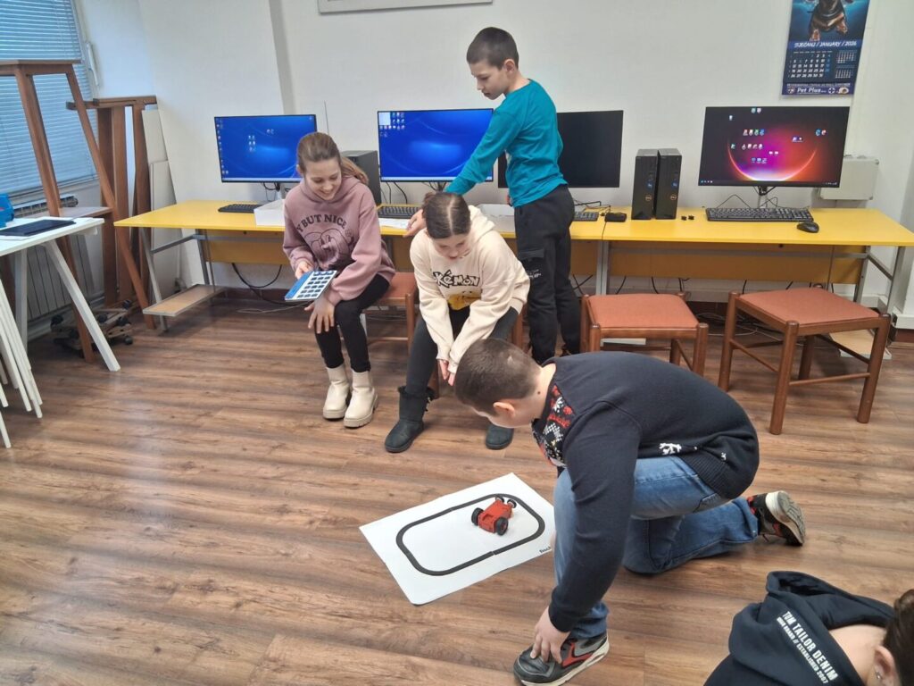 Pod vodstvom Une Šnajdar radili su u manjim timovima, slagali blokove na podlogu te pokretanjem programa na tabletu odmah promatrali kako se njihov kod „pretvara“ u ponašanje robota. Kroz zadatke poput vožnje ravno, skretanja, zaustavljanja ispred prepreke ili prolaska kroz poligon učili su kako problem podijeliti na manje korake i logički ih posložiti.
